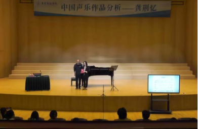 讲座围绕不同时期、不同风格、不同题材的中国声乐作品展开,由我院声乐教师和艺术指导教师合作带来《青玉案·元夕》《故乡是北京》《美丽的阿瓦日古丽》《不幸的人生》《爱莲说》《抬头仰望夜黑的天》《我出生在黄河岸旁》等七首声乐作品,龚荆忆副教授围绕中国声乐作品演唱与艺术指导演奏等多方面分析展开了深入浅出的讲解。她结合各位老师的演唱实例,逐一从作品的创作背景、音乐风格、演唱技巧等多个维度进行了细致剖析,并通过演唱和演奏示范让在场的教师们和同学们对中国声乐作品有了更为全面和深入的理解。